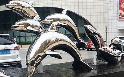 應(yīng)用于水景之中的不銹鋼雕塑,包括但不限于人物、動(dòng)物植物、景觀擺件等,常見如貝殼、海螺、海豚、魚、仙鶴、天鵝、青蛙、小鹿、荷花、蓮花、海浪浪花、水滴、假山、鏤空球、圓環(huán)等等。
